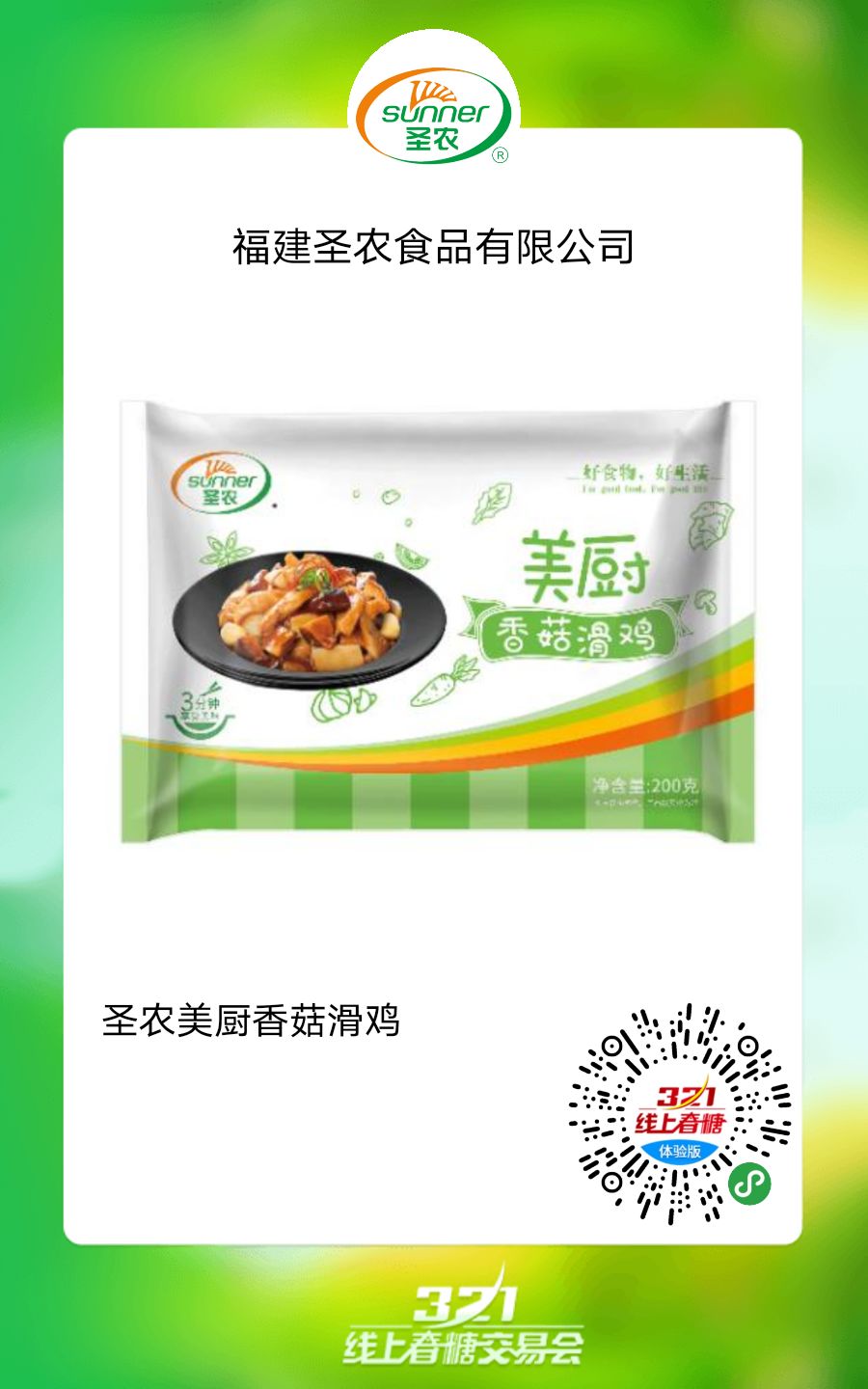 产品名称:圣农美厨香菇滑鸡