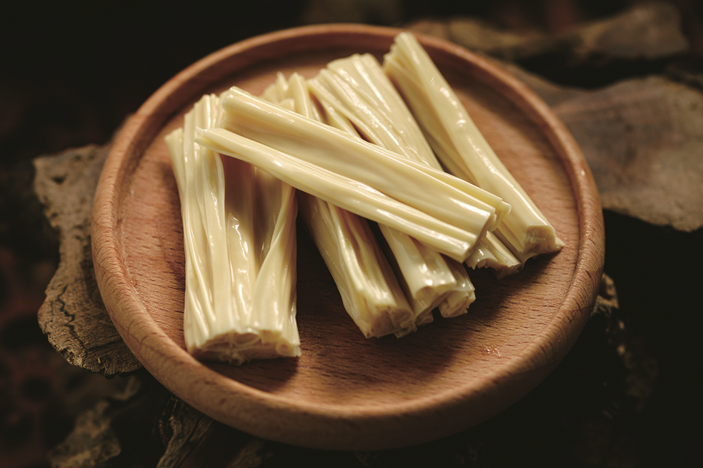 随着消费者对品质生活的追求,营养价值高、烹饪方式简捷的鲜腐竹产品,在蚕食干腐竹市场份额的同时,更是将原本不会泡发干腐竹的年轻消费群体又笼络回来,进一步扩充了腐竹的市场规模。